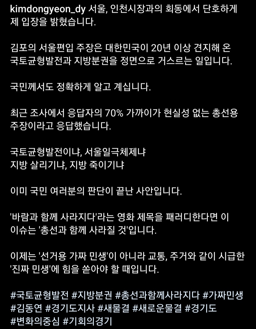 김동연 경기도지사는 오늘 아래와 같은 글을 SNS에 올렸다.