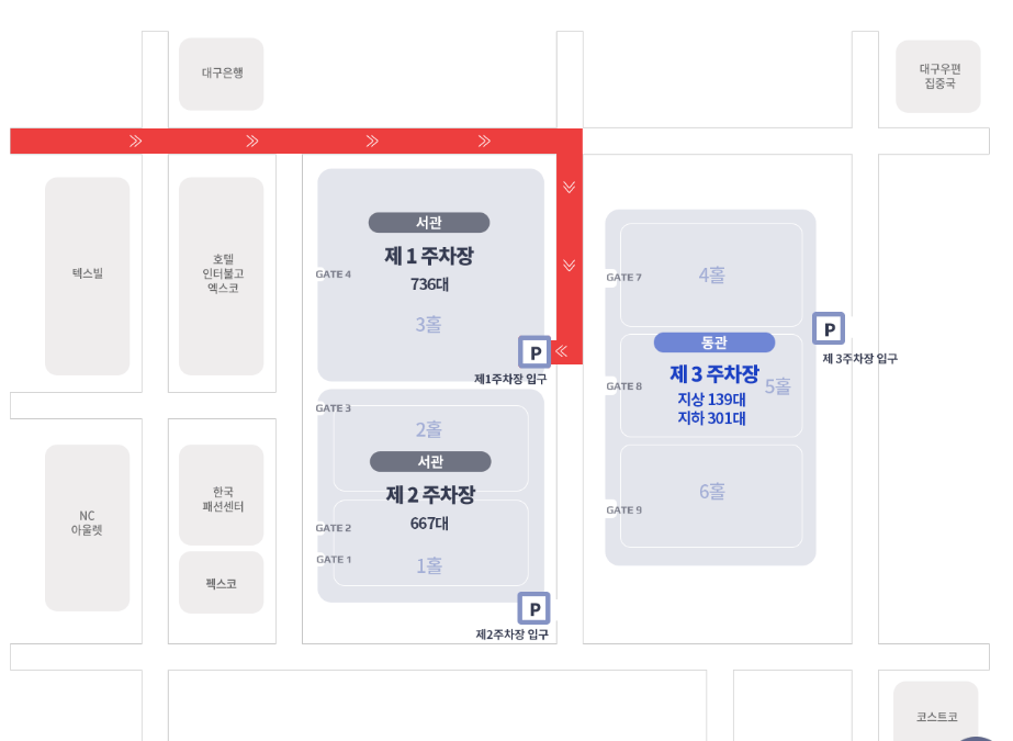 📍 엑스코는 동관 / 서관으로 구분되어 있습니다. 주차위치를 확인하시면 편리합니다.