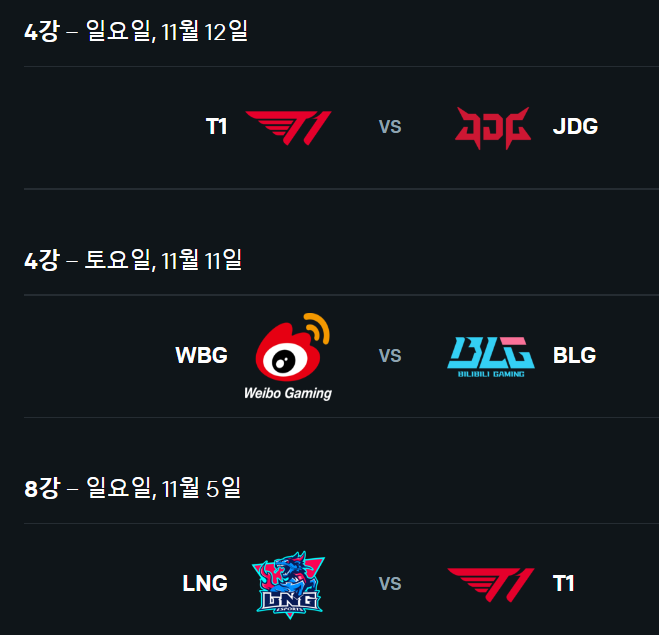 한국팀 t1 vs 중국팀 weibo