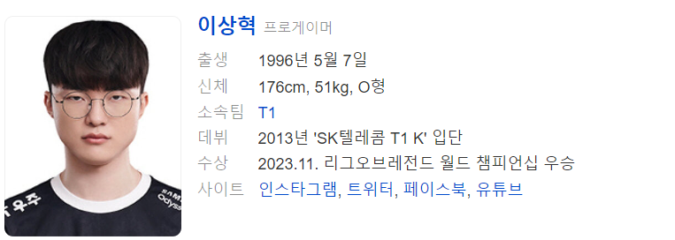 페이커 이상혁 선수는