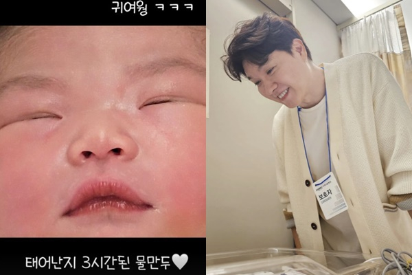 김다예는 SNS에 귀여워 태어난 지 3시간 된 물만두라며 신상아인 딸 전복이의 사진을 올렸다.