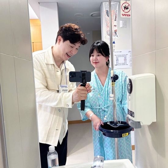 박수홍의 보호자 목걸이에는 이대서울병원이라고 적혀있다.