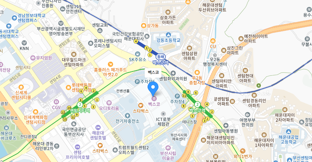 센텀시티역 1번 출구로 나와서 벡스코 약 50m 도보로 진입