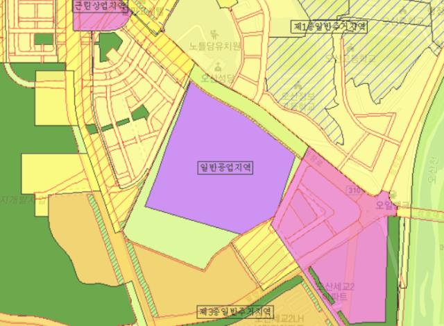 일반공업지역 현재 공장용지로 지정되어있어서 계발이 어려운상황이다.