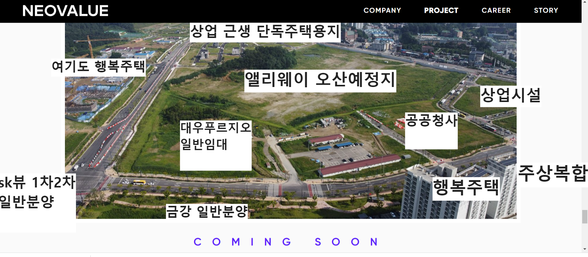 앨리웨이 계획회사(네오벨류)가 오산에 대규모 땅을 매입 했다한다.