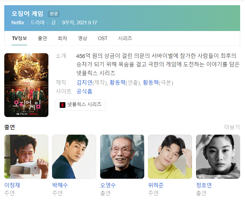 이정재 박해수 주연 외에 오영수 정호연까지 글로벌 탑스타로 만들어준 오징어게임 1을 이을 두번째 시리즈 작품의 출연진들을 소개해보겠습니다.