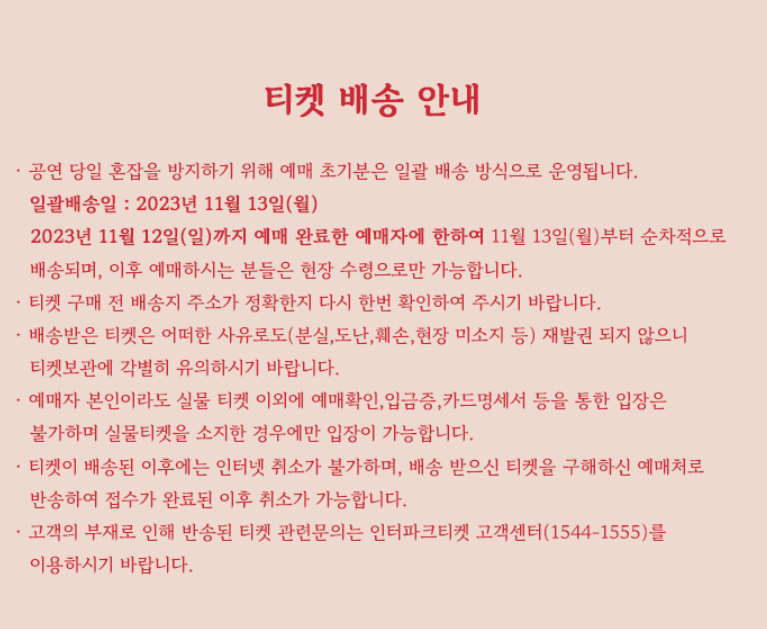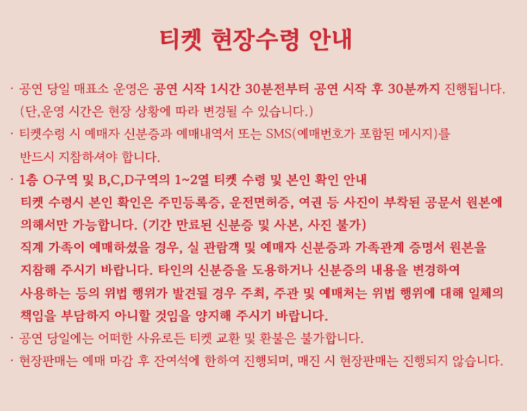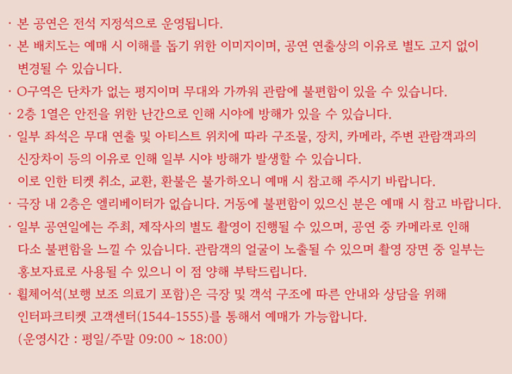 휠체어석(보행 보조 의료기 포함)은 인터파크티켓 고객센터를 통해 예매가능