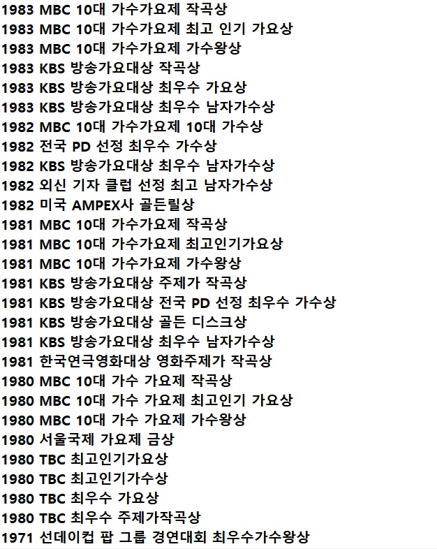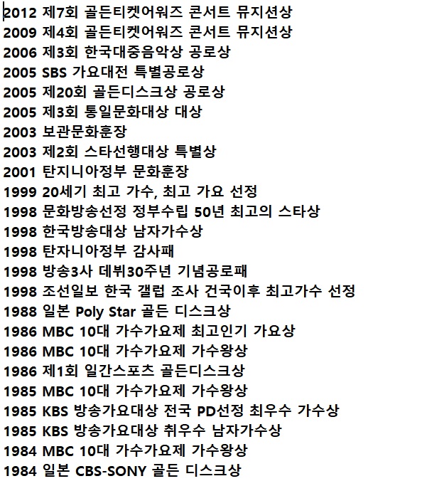 ✅조용필 수상내역
