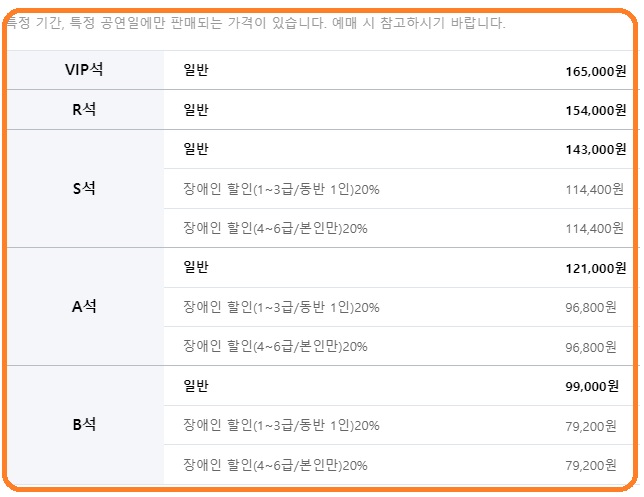 티켓가격 / 좌석 / 찾아가는 길 / 주차