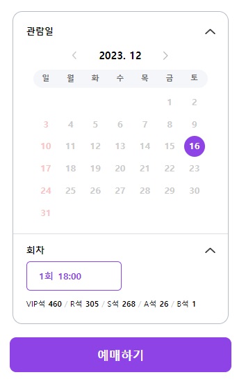 광주 공식 예매가능창입니다.