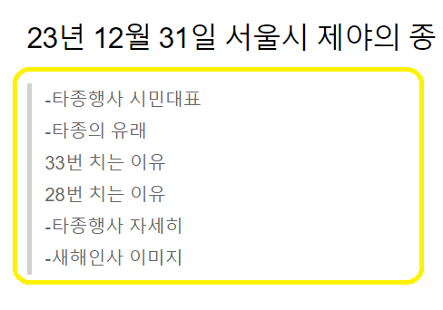 23년 12월 31일 서울시 제야의 종 타종행사 정보공유