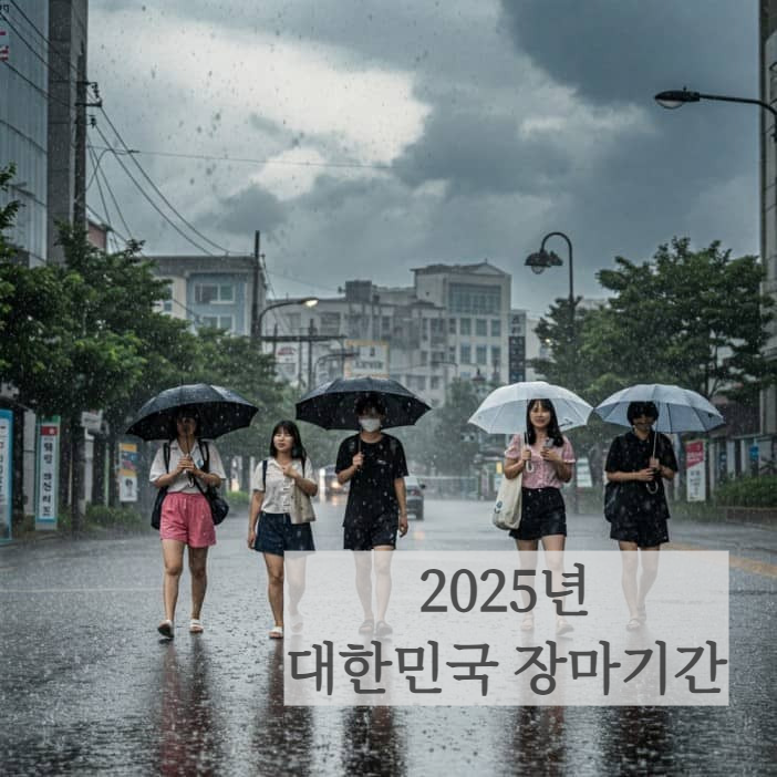 기상청의 평년값과 최근 기후 데이터를 바탕으로, 2025년 장마기간은 다음과 같이 예상됩니다.