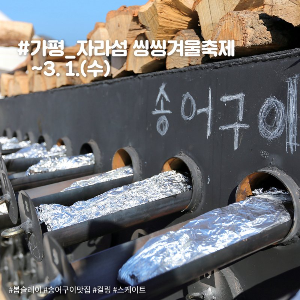 제12회 자라섬 씽씽 겨울축제. 경기도 가평군 자라섬에서 열리는 자라섬 씽씽겨울축제는 대표 겨울축제 중 하나로서, 올해 12회 차를 맞이하는 이색 겨울축제이다. 경기도에서 유명한 관광지인 자라섬에서 추운 겨울 꽁꽁 얼어붙는 시기인 2월에 축제가 열렸으나, 올해부터 하천결빙 시스템을 이용하여 12월 말부터 3월 1일까지 행사가 진행된다. 누구나 쉽고 재미있게 얼음 송어낚시를 즐길 수 있으며, 많은 관광객이 찾는 축제이다. 제12회 자라섬씽씽축제의 묘미는 깨끗한 자연에서 가족, 연인 등 모든 연령층이 즐길 수 있는 프로그램을 운영한다는 것과 송어 낚시를 통해 회센터에서 송어회, 송어회무침, 송어구이등을 즉석에서 맛볼 수 있으며, 그 외에도 다양한 먹거리가 준비되어 있다. 얼음낚시 이외에도 송어 맨손 잡기, 전통썰매, 연 만들기 등 전통한국 겨울 문화를 체험도 할 수 있다.